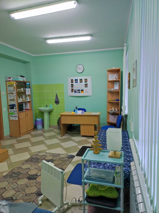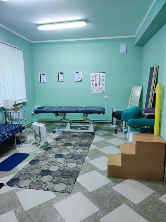 Кабинет оборудован самым современным оборудованием: гидравлический массажный стол, медицинская кушетка для осмотра, пеленальный стол для массажа и осмотра детей младшего возраста.